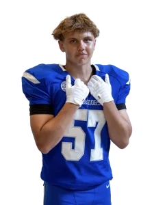 #80. Tavarius Wallace14. Zack Johnson15. Nathaniel Biermaier16. Thaddeus Young20. Tyce Faber22. Blake Brenny23. Alex Tholen25. Lyam Watson25. Charvel Watson28. Hakon Haapajoki30. Jackson Loreno30. Mikah Watson33. Emmit Becher51. Neil Branstner52. Kingsleigh Seidl56. Skyler Girdley57. Aidan Lindgren58. Dahlton Pistachio60. Wyatt Kuepers62. Levi Becker64. Ethan Johnson66. Mason Hrudy67. Caleb Cash68. Lucas Buck76. Lucas Cline84. Christian Morris #57PositionLinebacker (LB)Grade10Height5'10Weight180